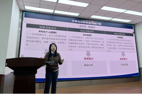 武同雁指出创新创业训练能培养大学生的问题解决能力、团队合作精神,有助于提升职场竞争力,我校历来重视创新创业教育,相关科研和竞赛成果丰硕,希望通过今天的培训,能助力师生的创新创业之路走得更稳、更远。