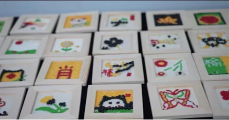 在潘德贵的耐心指导下,同学们纷纷拿起镊子、胶水等工具,将一颗颗色彩斑斓、形状各异的粮食小心翼翼地粘贴在画板上。有的同学以动物为主题,描绘出了各种姿态的卡通形象;有的则以自然风光为蓝本,展现了祖国的大好河山;还有的同学别出心裁,将传统的生肖图案与姓氏相结合,创作出了独具特色的生肖粮食画作品。