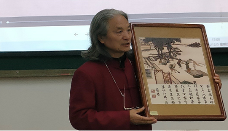 课堂上,潘德贵向同学们详细介绍了粮食画的历史渊源、制作工艺和艺术特色。粮食画是以各类植物种子和五谷杂粮为原材料,通过粘、贴、拼等手法,精心创作而成的精美艺术品,其作品不仅具有极高的艺术观赏价值,更蕴含着深厚的农耕文化内涵,是我国劳动人民智慧的结晶。