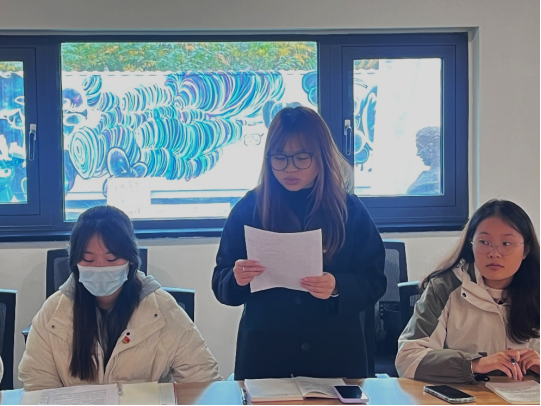 首先学生党员就当前班级学风建设情况发言并讨论,会上学生第四党支部全体同志紧紧围绕学院发展目标,结合自身专业,就教学、科研、管理等方面提出了许多建设性的意见和建议。黄紫怡同志提出完善晚点到制度,倡导人性化管理,保障学生的在校安全;张紫静同志提到要关注学生心理健康,定期开展心理健康教育,可以通过心理委员制作调查问卷,班委、老师等与学生定期沟通,开展主题班会等多种方式提高同学们对心理健康的关注程度;庞广菊同志认为应成立班级帮扶小组,进一步提升同学们的学习动力。之后梁晓娟对同志们的发言进行补充,她强调要贯彻落实新时代党的建设总要求,加强党建和思想政治工作“七个一”工程,要将个人发展与学院发展紧密结合起来,在学风建设中发挥党员的榜样作用,为实现学院高质量发展贡献自己的力量。