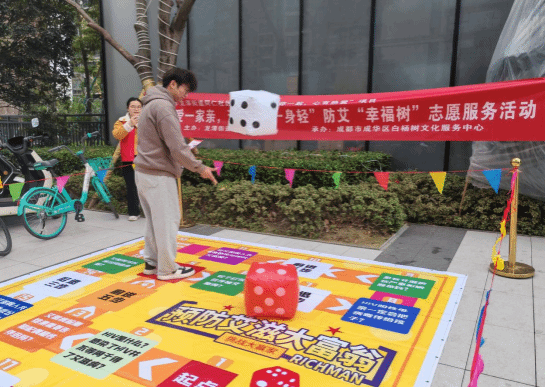 同时,为提升活动趣味性和互动性,本次防艾志愿服务活动特别设计了寓教于乐的互动游戏环节。其中,“预防艾滋大富翁”游戏通过模拟棋盘游戏的方式,让居民们通过投掷骰子数来回答不同个数的防艾问题,使居民们对防艾相关知识有了更深层次的了解。“防艾手印树”环节,居民们在特制的树上印下自己的手印,象征着他们对参与防艾行动的承诺和支持。这一环节不仅增强了居民的参与感,也加深了他们对防艾工作的理解。在轻松愉快的氛围中,防艾知识得以自然而有效地传达给每一位参与者。