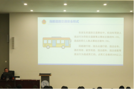 为引起学生对交通安全的重视,梁杰用通俗易懂的语言和形象生动的图片,结合现实生活中的交通案例,从非机动车和机动车驾驶注意事项、交通事故应急处理等方面详细讲述。讲座以学生应当注意的交通安全为侧重点,呈现形式图文并茂,对提高学生遵守交通法规的意识具有深刻启示作用。