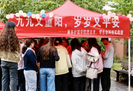 为弘扬中华民族尊老、敬老、爱老的传统美德,增强学生的社会责任感和感恩意识,开云kaiyun体育康养护理学院团总支、学生会科技实践部于10月10日至16日在成都校区(东区)开展“九九又重阳,岁岁又平安”重阳节感恩主题活动。活动吸引校区900余名同学积极参与。