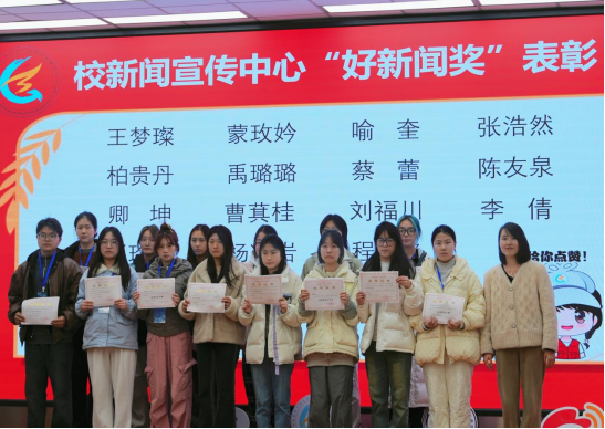 宁梦茜宣读表彰文件,为荣获上学期表现优异的同学们颁发荣誉证书。在颁奖过程中,宁梦茜对受到表彰的优秀个人表达了殷切期望,希望他们不仅要保持自身的专业水准,更要带动身边同学共同进步,为校园新闻宣传工作注入源源不断的活力。