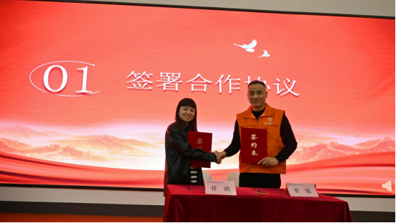 随后,双方代表任讷与李强正式签署合作协议,双方就爱国主义教育、公益志愿服务、学术研究活动等方面开展深入合作达成一致。任讷为蒲斌、曾树林、李强三位老师颁发“校外志愿活动指导老师”聘书。