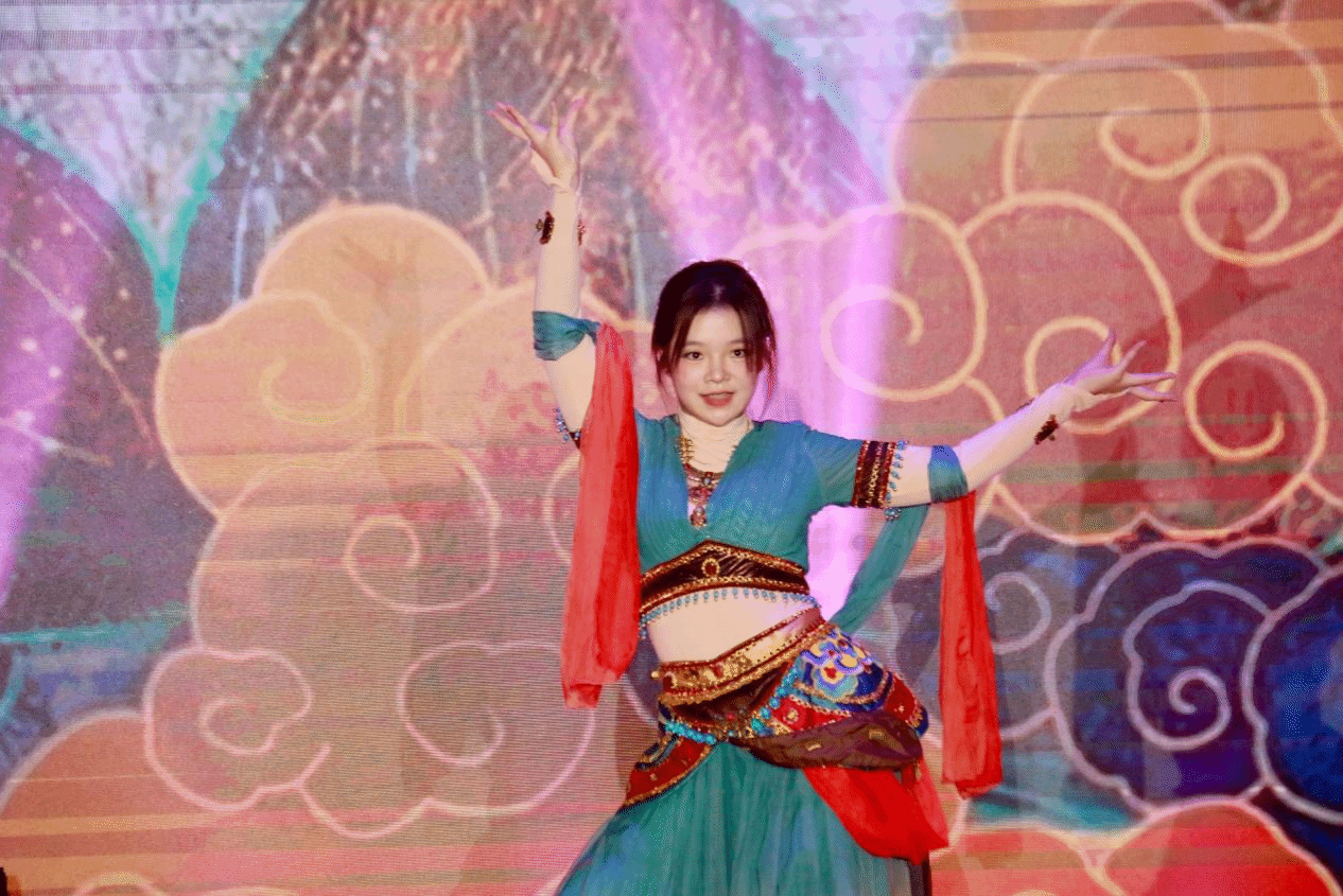 第二篇章“梦想起航”。歌曲《裹着心的光》温暖而动人,鼓励同学们追随光,心向远方,勇敢前行。由学院师生合作朗诵的《灯塔一束光》描述了师如灯塔,在黑夜中散发光芒,筑梦远航。中国舞《梦回敦煌》以曼妙的舞姿展现了敦煌文化的璀璨精深。合唱《我爱你中国》用激昂的歌声诠释了全体师生对祖国的热爱,现场气氛被推向高潮。舞蹈《奔跑向未来》以青春动感的舞姿为本次迎新晚会画上了圆满的句号。