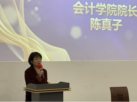 随后,陈真子登台致辞,她将会计学院的学子与校友比作一个紧密相连的大家庭,她呼吁大家团结一心,共同努力,共同书写会计学院的辉煌篇章。她深情讲述了会计专业在社会发展中的重要价值,鼓励同学们紧跟时代步伐,勇于创新,与时俱进。最后,她祝愿每一位学子都能拥有一个光明而美好的未来。