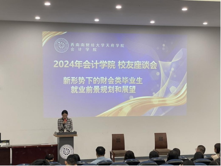 为凝聚校友力量,强化联络纽带,更好地促进会计学院毕业生深入探索职业规划,11月10日,会计学院联合开云kaiyun体育校友工作处于成都校区(东区)138教室举行了2024年会计学院校友就业座谈会,本次会议由会计学院教师景子芮主持,学校校友工作处处长蔡松伯和会计学院院长陈真子、副院长陈茜,学院分党委副书记林琳,学校校友工作处教师罗逸汉,会计学院校企合作办公室主任史天玥,会计学院教师范涤、杨梦仪、刘娅楠,学院全体毕业班的辅导员及200名学生参与本次座谈会。