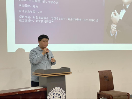 随后,2015届本科电算化校友李鹰曦上台带来了他的励志故事。他首先坦诚地分享了自己作为专科毕业生在求职过程中所面临的挑战与艰辛,然后讲述了他如何通过不懈的努力,在短短两年内成功考取注册会计师资格的奋斗历程。李鹰曦详细介绍了注册会计师行业的现状和未来发展的机遇,为在场的学生们描绘了一幅行业前景的蓝图。他强调,尽管竞争激烈,但只要找准方向、坚持不懈,就能在这一领域取得成功。最后,他慷慨地分享了自己的三条职业心得,首先,制定一个切实可行的证书备考计划,这不仅能提高通过率,还能增强个人的专业能力;其次,要敏锐地捕捉职场中的良机,敢于尝试和挑战;最后,持续精进专业技能,不断提升自我,以适应不断变化的职场需求。