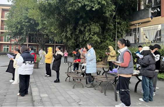 十二月已过半,冬季的寒意逼近,尤其是早晚气温骤降,尽管如此,同学们仍能克服寒冷、顶住困意,按时到达现场参与活动。“一日之计在于晨”,美好的一天从同学们的朗朗书声中开始。