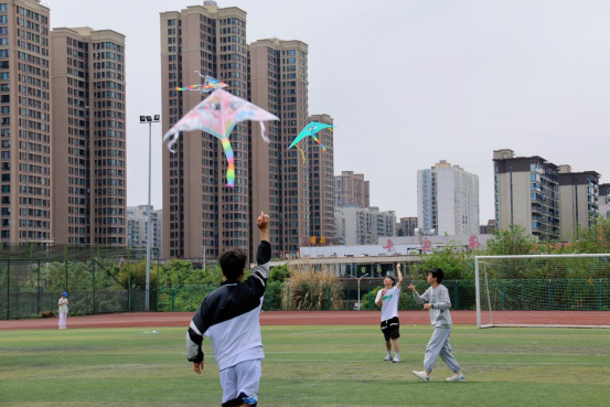 4月17日中午,参与手绘风筝的同学在成都校区(东区)操场进行风筝放飞。风筝放飞现场热闹非凡,同学们迎着春风,将承载着希望的风筝放飞在湛蓝的天空中。