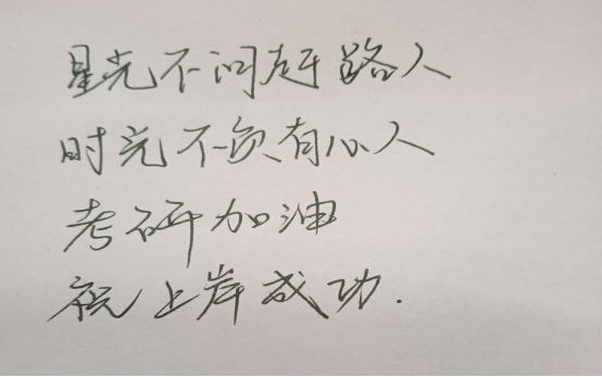 本次活动通过线上报名,线下收集方式开展,得到了同学们的积极响应和踊跃参与,大家纷纷送上了温暖而真诚的祝福,为即将到来的考研加油鼓劲。在剩下的冲刺日子里,一句句鼓励的声音,一段段暖心的话语,都将汇聚成坚持的动力和勇气,希望所有的考研学子都可以朝着自己的梦想无限前进。
