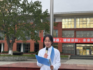 升旗礼毕,学生代表赵一蔼围绕“学习贯彻党的二十大精神”展开发言。她激昂地表示,作为新时代的青年,身处在国家蓬勃发展的伟大时代,理应时刻铭记肩负的责任与使命,要让炽热的爱国情怀落地生根,转化为实实在在的行动。在日常学习生活中,需勤奋刻苦地学习科学文化知识,不断磨砺自己、全方位提升综合素质,以青春之我、奋斗之我,为祖国的繁荣富强添砖加瓦,贡献属于自己的一份力量。