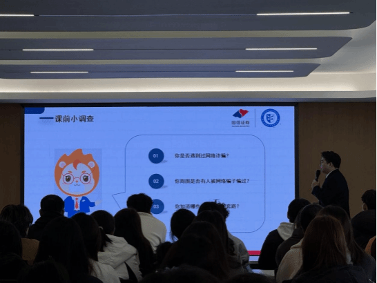 活动当天,陈娴首先发表了动员讲话。她强调了参观企业对于学生们职业发展的重要性,并鼓励大家在参观过程中积极观察、思考,将课堂上学到的理论知识与实际工作相结合,以提升自己的专业素养和实践能力。随后,在国信证券工作人员的精心安排下,师生们有序参观了营业部的各个区域。通过实地观察和互动体验,学生们对金融行业的实际运作有了更加直观的认识。参观结束后,国信证券的工作人员马原为大家带来了一场精彩的讲座。他首先全面介绍了国信证券的发展历程、业务范围以及行业地位,随后详细讲解了当前金融市场中常见的诈骗类型和应对策略。针对智能金融创新班的学生特点,马原还特别提出了职业规划建议。他鼓励学生们要紧跟时代步伐,不断学习新知识、新技能,以应对金融行业日新月异的变化。