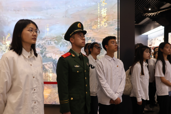随后,全体师生前往绵阳市烈士纪念馆聆听讲解员讲述这里波澜壮阔的历史伟迹,沿着时间线延伸的顺序,一位位伟人英雄映入同学们的眼帘,每一件展示出的真实文献文物映射着过去的时光,在数年以后又折射在天府学子们的面前。置身于此,全体师生总能在思接千载、视通万里中得到“从哪儿来,到哪儿去”的启迪,从不忘本来中获得开辟未来的青春力量,通过参观学习,也筑牢了同学们毫不动摇信仰,坚持砥砺奋斗的价值信念。