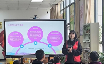 活动伊始,志愿者们首先用通俗易懂的方式向小朋友们讲述了中国传统桥梁建筑的辉煌历史与独特魅力,精美的图片与生动的讲解吸引了在场的每一位小朋友。他们纷纷举手提问,渴望了解更多相关知识。随后,志愿者展示了如何用一双双普通的筷子,通过创意设计和团队协作,搭建出形态各异的桥梁模型。