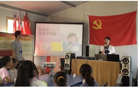 好队前往了四川省绵阳市飞龙山爱国主义教育基地开展了“普通话诵百年伟业,长征精神薪火相传”实践活动,帮助当地儿童养成讲好普通话运用文明用语的良好习惯,感受汉语的博大精深,体会中华优秀传统文化的魅力。