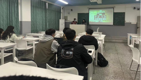 除此之外,各二级学院也围绕“勿忘国耻,吾辈自强”的主题,先后积极组织线下观看南京大屠杀记录片。通过视频资料,学生们更直观地了解历史的残酷与伤痛,进一步引导大家深入思考和分析历史事件的影响和意义。同时,校园内也开展了系列宣传活动,营造浓厚的爱国主义氛围,让更多的师生参与到这场共同缅怀的行动中。