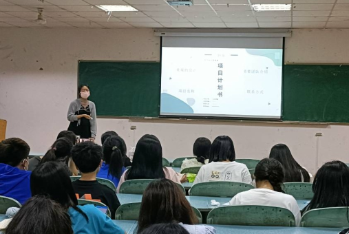 李琳为同学们分享了相关国家级项目策划书,并介绍了相对应的撰写方法。她提到,一份完整的项目策划书要包括封面、主要内容、团队介绍三部分。李琳立足实际经验,认为封面应包含美观的设计、简要的团队介绍、项目名称、联系方式四方面。活动最后,同学们积极提问,李琳耐心一一进行解答。