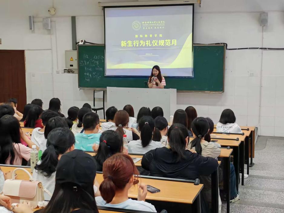 礼仪规范系列活动旨在号召国际教育学院学子不仅在专业上注重美、在外貌上追求美、在学习中展现美,更要在行为上体现美、在生活中践行美、在校园里发扬美,让文明礼仪之花在校园处处盛开。