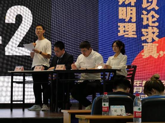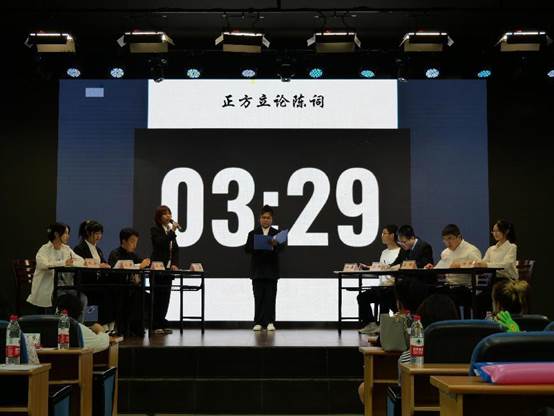 本次决赛以“人生路上是奋斗更重要还是机遇更重要”为辩题,正反方赛前积极讨论准备,以辩明思。在本次辩论赛中,两队伍均由一辩、二辩、三辩、四辩四人组成,经历一辩陈词、双方攻辩、自由辩论、总结陈词等环节,最终由评委老师与学生评审综合双方辩手的表现对参赛队伍进行投票评分。