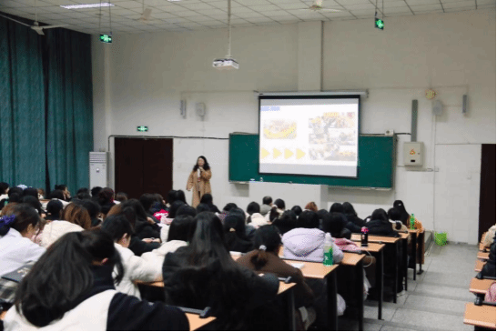 随后,杨洋围绕专业优势、竞争市场、认知未来、挑战机遇等关键维度,深入阐述了学院各专业在养老行业未来的职业发展路径。剖析专业优势时,杨洋分析了各专业关于养老的知识体系以及技术应用该如何转化为职场竞争力的要点,帮助同学们明晰专业“立身根本”。论及竞争市场时,她以详实的数据呈现行业全貌,涵盖企业布局、人才供需等,让同学们对行业竞争形势的认知更加清晰。在认知未来部分,杨洋分析了大健康专业在理念更新、需求变化下的远期走向,拓展了同学们的职业视野。面对挑战机遇,她激励同学们要把握机遇、勇迎挑战、顺势而为。