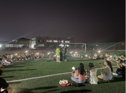 本次庆中秋活动是新生们踏入大学校园以来首次策划参与的文化娱乐活动。在活动过程中,每位同学都积极投入其中,整个操场被浓厚的节日氛围所包围,洋溢着青春独有的活力与热情。同学们跟随着旋律摆动着手中的荧光棒,为表演者加油打气。