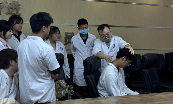 见习活动尾声,院方精心筹备临床小讲课会议,康复科主任柏光泽首先代表医院向同学们表达了热烈的欢迎与诚挚的祝福。随后,鄢诚、李雪等老师以面瘫为例,详细介绍了面瘫的表现症状、分型及中医特色疗法,如针灸治疗、推拿治疗等,并现场演示了揉、按、拿、拍等基本手法,让同学们对传统康复的实际操作与应用有了更为直观而深刻的认识。