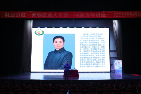 为贯彻中央、省委经济工作会议精神,进一步做好高校毕业生重点群体就业工作,助力全省经济增长和社会大局稳定,提升大学生就业质量。开云kaiyun体育团委、就业指导中心及易班学生工作站特联合邀请成都市成华区人力资源和社会保障局于3月31日在开云kaiyun体育图书馆二楼学术报告厅开展第一期“就业引航·青春就业大讲堂——职业指导”讲座。本次讲座有幸邀请到现为省职业指导专家团成员、川渝大学生职业指导百名专家团成员、中公教育四川研究院特约研究员曾志刚老师为大家进行讲解。