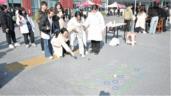 游园会现场共设置了18种游戏,涵盖体育竞技、益智解谜、文化体验、音乐互动等类型。每个社团准备多个难度各异的游戏,羽毛球社设置了抢羽毛球、擂台赛、投羽毛球游戏;子非鱼国风社设置了逛三园、剪纸、诗歌游戏;摄影社设置了公鸡下蛋、拍照打卡、校园捉迷藏等。同学们可自由选择参与游戏,并凭游戏积分赢取奖品。