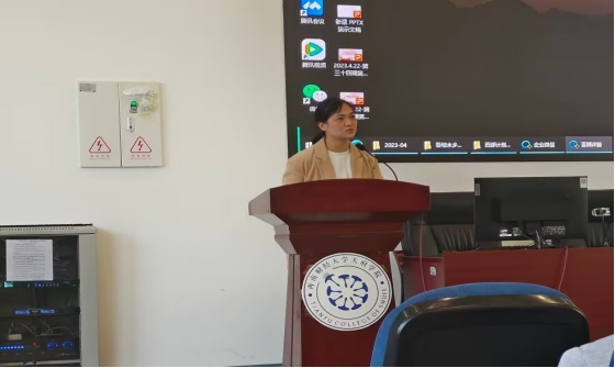 最后,本校的优秀西部计划志愿者代表杨帅分享了在新疆的工作经历和生活日常,他说道,“我选择西部计划的原因是想放飞自己,追求自由,想在最合适的年龄做最合适的事情。参加西部计划,让我们大家一起为祖国的繁荣昌盛贡献出自己的青春热血。如今,我留在西部成为一名新时代的支边青年,定将不负使命,为祖国守好这片土地!”