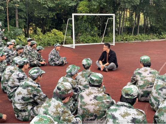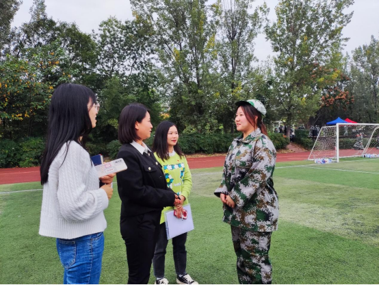 彭雯秀向各位教官的辛勤付出表示感谢,希望在教官的指导下,同学们能服从指挥,克服困难,保持良好的状态,认真训练,严格要求,圆满完成军训任务。老师们在军训休息间隙,走近新生,主动与学生交流,了解训练情况,针对新生在军训期间遇到的困难和问题给予耐心解答。彭雯秀关心询问因伤病无法参训学生详细情况,帮助学生克服伤病可能造成的心理影响。辅导员张元辰与学生充分沟通交流,对大家心理及身体情况进行了解,积极鼓励学生团结协作,共同完成任务。