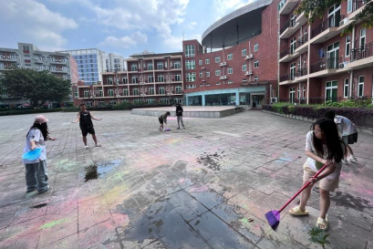 本次活动以小组为单位展开,集合热身后,参与者手持彩色粉末一同冲出起跑线,沿着规定的路线奔跑,并向其他队伍挥洒手中的粉末。彩虹跑活动在全体彩虹炸弹大联欢环节达到高潮,大家将手中的彩虹粉洒向空中,瞬间一片彩虹粉雾升腾在所有人的头顶,场面十分壮观热烈。随后,参与活动同学和工作人员共同留影合照,记录下了美好的瞬间。最后,活动后同学们对现场进行了清理,保证校园干净整洁。
