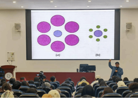讲座伊始,曹建波通过一系列生动有趣的画作和引人深思的问题,激发了听众的思考。他鼓励学生运用予境思维,打破固有的认知和惯性思维,探索新的解决路径。所谓予境思维,即倡导人们从更宏观、长远及多维度的视角审视自身环境、面临的情况及决策,这在当前快节奏且充满诱惑的社会中尤为重要。