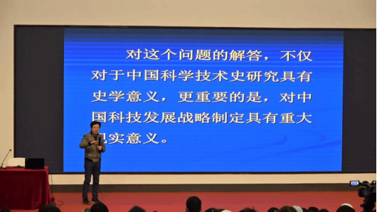 讲座伊始,孟建伟以中国古代科技曾取得的璀璨辉煌成就为引人入胜的开篇,旋即抛出李约瑟难题的核心关键疑问:缘何古代中国科技在往昔岁月中独占鳌头,却在近代科学汹涌浪潮的席卷下,于西方科技面前黯然失色?此问恰似一颗石子投入平静湖面,瞬间点燃全场听众的思辨热情。紧接着,他以近代科学的起源作为深度剖析的切入点,从哲学、文艺、启蒙这三个维度的根源之处层层展开深入探究。