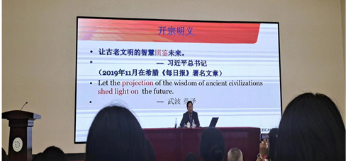 随后,武波从自身经历出发,结合“古人”“当代人”“外国人”三个不同的视角深入浅出地阐述了什么是中国文化以及中国文化更深层次的意义,着重以中国古代王朝的文化发展和现代学者对中国文化的看法为例,如:周公建礼,明朝编辑《永乐大典》、钱穆所述“国家之前途,将于民族文化内部获具生机”,说明中国文化对当今时代发展的重要作用。同时,武波提到平日行事当以中国文化为准则,方可德行无失。