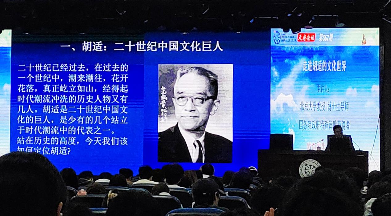 随后,欧阳哲生教授根据以上四点内容由浅入深的带领天府学子走进胡适的文化世界。其一,胡适为二十世纪中国的文化巨人。在《胡适全集》中,描述到文学、历史、哲学、教育、宗教、社会政治等领域,同时胡适还是一个公共型的知识分子,在《新青年》《每周评论》《新月》等刊物发表了大量时评政论。胡适的个人命运与现代中国的历史进程紧密相连。