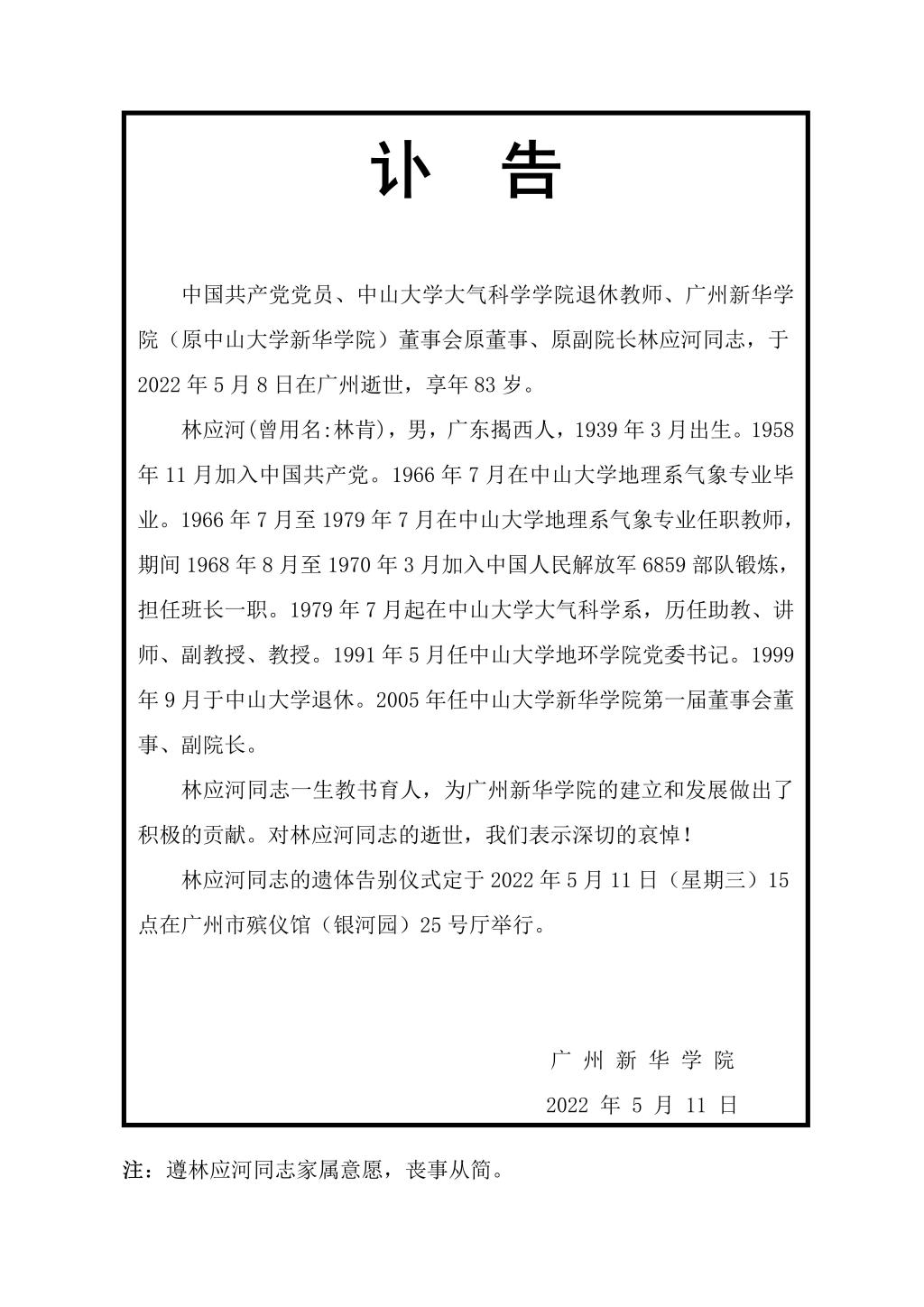 林应河教授讣告