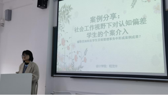 接下来,会计学院辅导员程茂华和康养护理学院辅导员陈心悦分别分享了本学院的典型学生工作案例,她们的经验分享不仅展示了各自学院在学生工作中的创新做法和成功经验,也为其他辅导员提供了宝贵的参考和启示。