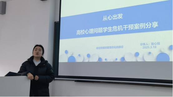 随后,党委学生工作部心理健康专职教师范兴娴针对德阳校区学生心理健康工作情况进行了介绍,汇报了当前工作进度,强调了心理健康在学生全面发展中的重要性。