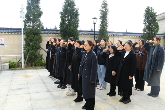 参观结束后,全体教师党员在烈士纪念碑前集合,在康养护理学院分党委副书记陈雯的带领下,重温入党誓词。面对鲜红的党旗,教师党员们举起右拳,庄严宣誓,表达对党的忠诚、对共产主义事业的坚定信念以及对党和人民的庄重承诺。