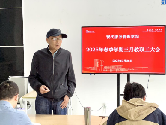 3月26日,现代服务管理学院在B6-1会议室召开2025年春季学期三月教职工大会。会议由学院分党委书记倪娅主持,出席的领导包括院长罗珉教授、执行院长何亮教授、副书记潘兰、副院长高丹教授、刘宇教授及院长助理佘脊博士等。