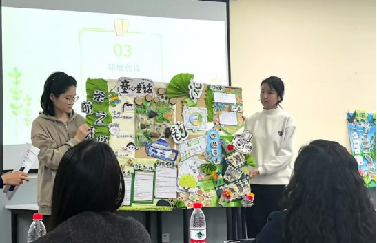 第四组咩咩幼儿园从项目背景、项目实施、主题墙展示等方面展开汇报,较为完整地呈现了其主题活动,研学手册设计精美,体现了同学们的用心。专家们认为,该组同学对资源的利用非常充分,且问题聚焦,很能落地,与办园理念十分契合。当然,如果项目展示能再深入一点,就更好了。