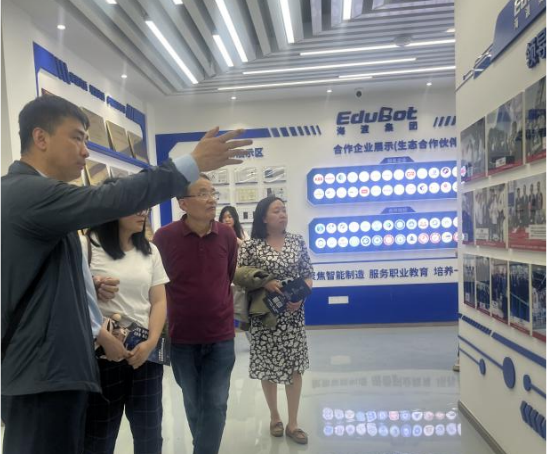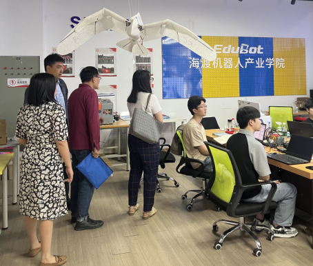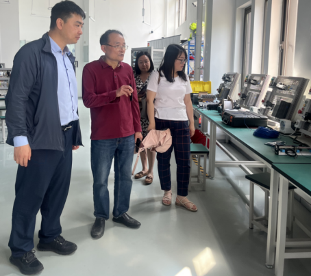 调研组还深入考察了海渡教育的实训教室,详细了解设备配置、课程实施及教学模式。吴敏书记就实训耗材管理、设备更新迭代及校企协同创新模式与企业方进行了探讨,并提出未来可通过共建实训基地、联合开发课程等方式深化合作。