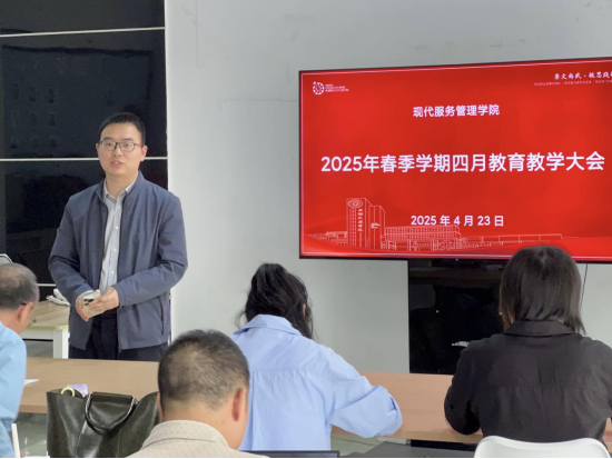 4月23日,开云kaiyun体育现代服务管理学院在B6-1会议室举办了本年度春季学期四月教育教学大会。本次会议由副院长高丹教授主持,与会领导为院长罗珉教授、分党委副书记潘兰、副院长刘宇教授及院长助理佘脊博士等。
