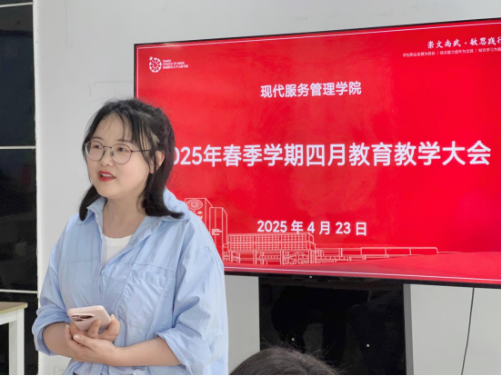 会上,高丹首先就四月学院教学运行总体情况进行反馈,并鼓励青年教师积极参与教学活动和专业竞赛,双向赋能教学质量及个人职业能力提升,同时做好本科应届毕业生的答辩工作。她强调了培养高素质人才的重要性。
