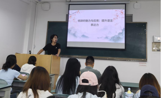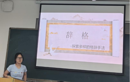 6月19日,在绵阳校区三教教室开展了《现代汉语》课程翻转课堂教学活动。围绕“修辞”这一章节的知识内容,同学们以小组为单位,通过查阅资料、制作微课视频、设计互动环节等方式,对排比、比喻、拟人、夸张等常见修辞手法进行了深入剖析与生动展示。课堂上,学生们不仅准确解读教材内容,还结合现实生活中的语言现象举例说明,展现出扎实的专业基础与敏锐的语言感知力。刘家林老师适时予以引导、点拨,并组织同学互评互议,营造了浓厚的学习氛围。这种“学生主讲、师生共研”的教学模式,有效提升了学生的逻辑思维能力和语言组织能力,激发了学习兴趣与主动性。
