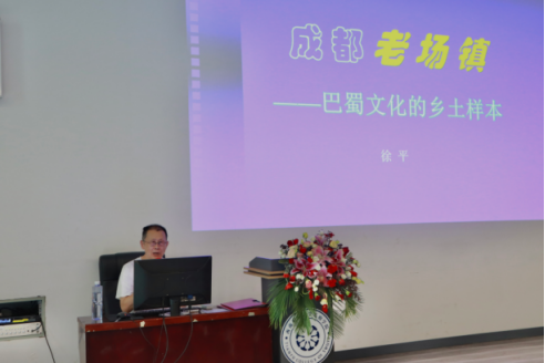 在全体嘉宾见证下,刘丽娟与王勃文共同签署共建协议。鎏金沙缓缓倾泻,"巴蜀文化社会服务基地"金色铭牌在四川跨媒介传播与创新研究中心门前熠熠生辉。随后举行的首期专家讲座上,徐平教授以成都老场镇为例,生动阐释巴蜀乡土文化生命力:"场镇街巷肌理中蕴藏着'天人合一'的生态智慧,这正是当代文旅开发的灵魂所在。"现场展示的《老场镇影像志》引得听众驻足品鉴。