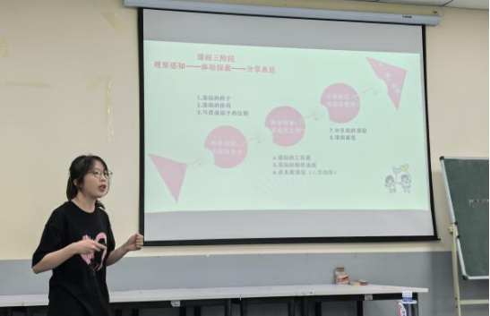 第四组咩咩幼儿园本月项目为《不“漆”而遇》,该组从项目起源、项目思考、项目设计、项目实施和项目成果等方面展开汇报,不仅从“幼儿兴趣”“可能获得的发展”“可能遇到的问题”“资源利用”4方面分析了项目的价值,还详细地讲解了项目流程。评委们点评该组课程创新性很高,同时针对课程设计提出了建议,强调活动要根据幼儿兴趣和发展水平进行调整。