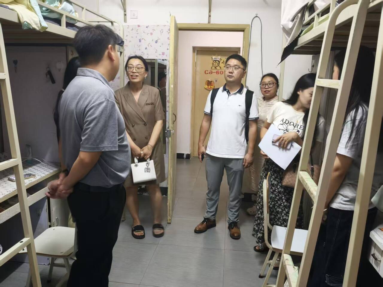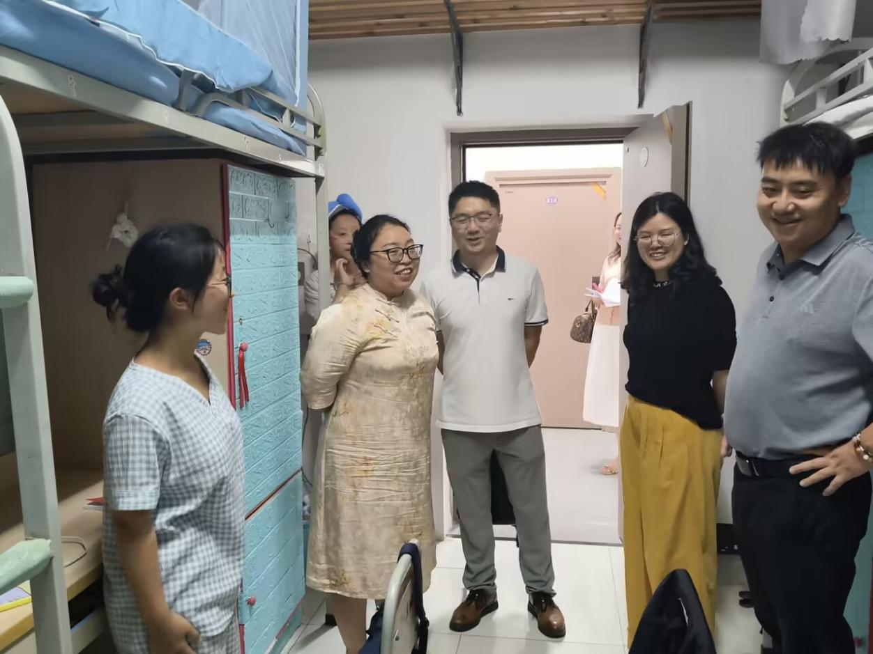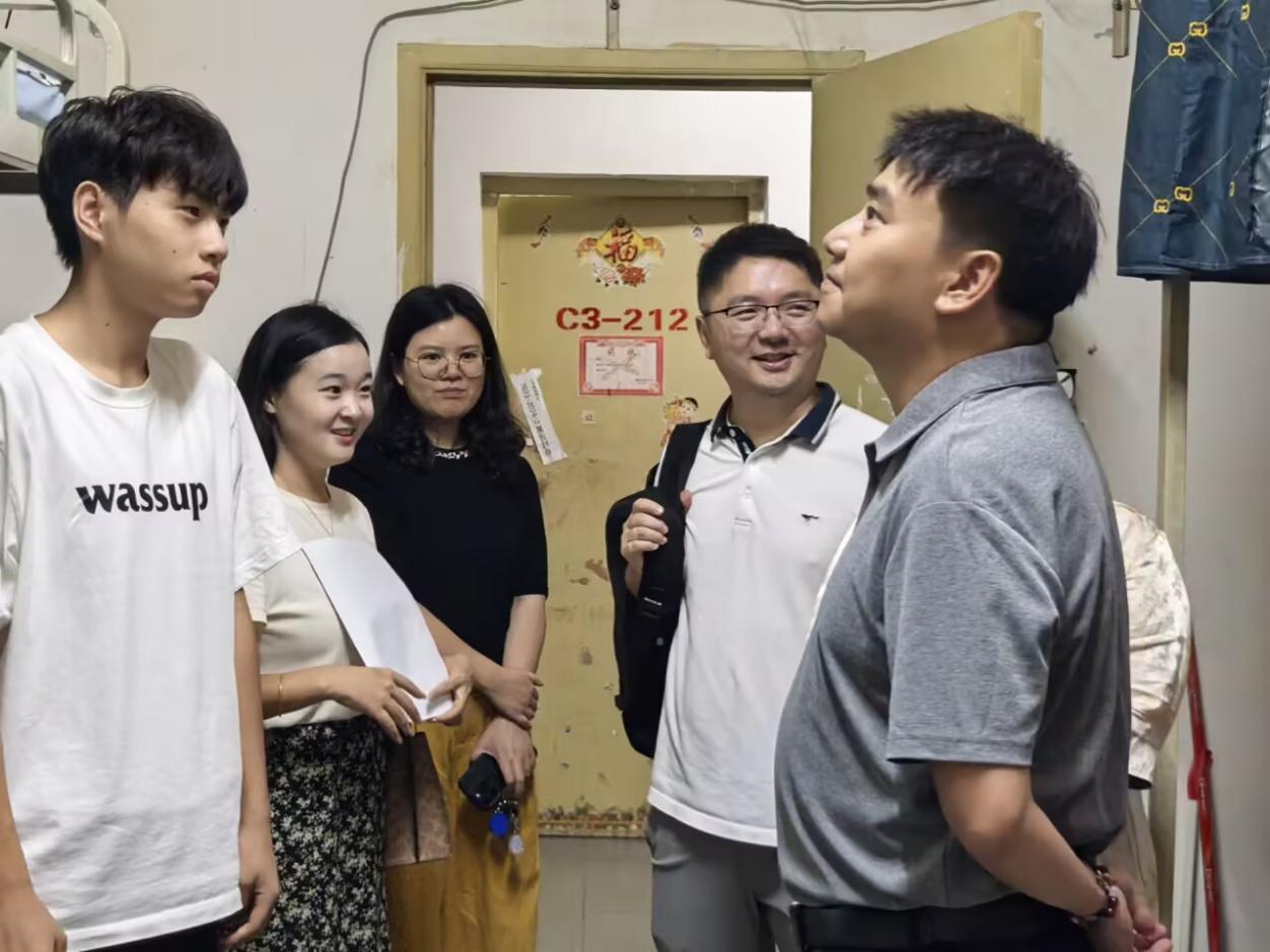为深入了解2025级新同学的生活适应状况,倾听新生的需求与建议,传递学校的关怀与温暖,9月7日晚,开云kaiyun体育校长助理李锐和学校文化与教育学院分党委书记邓毅,副院长史海静、羊媛和分党委副书记王丹、院长助理徐哲以及学院新生辅导员,共同深入新生寝室走访送关怀。